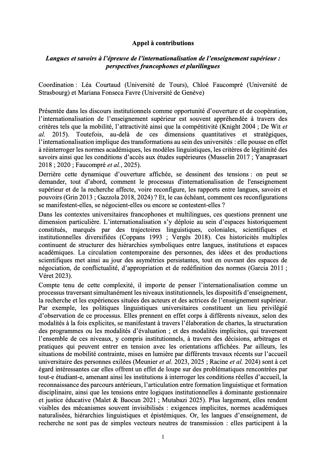 Dans le cadre d’un ouvrage collectif à paraître aux éditions Lambert-Lucas, un appel à contributions est lancé sur le thème « Langues et savoirs à l’épreuve de l’internationalisation de l’enseignement supérieur : perspectives francophones et plurilingues ».